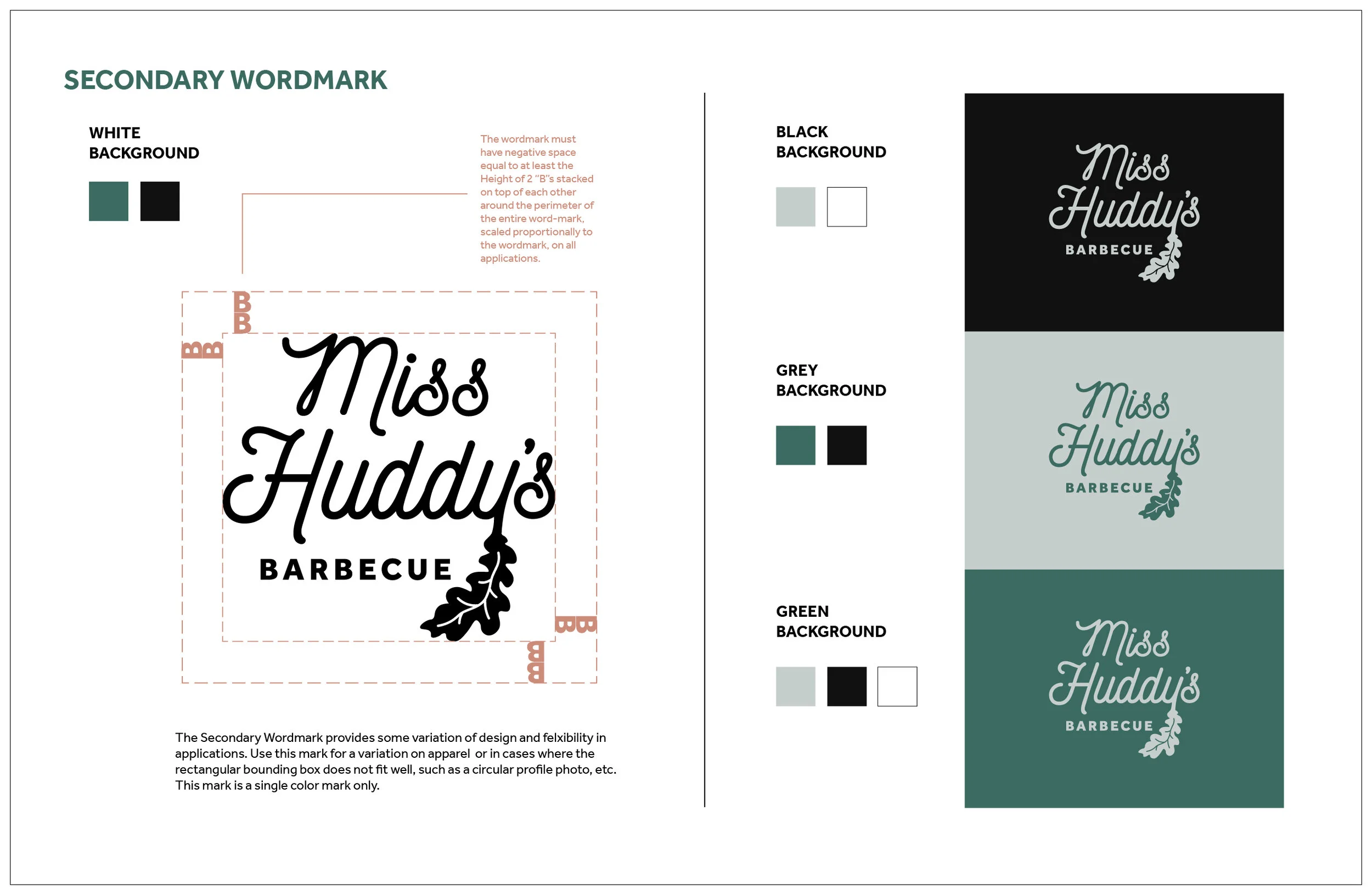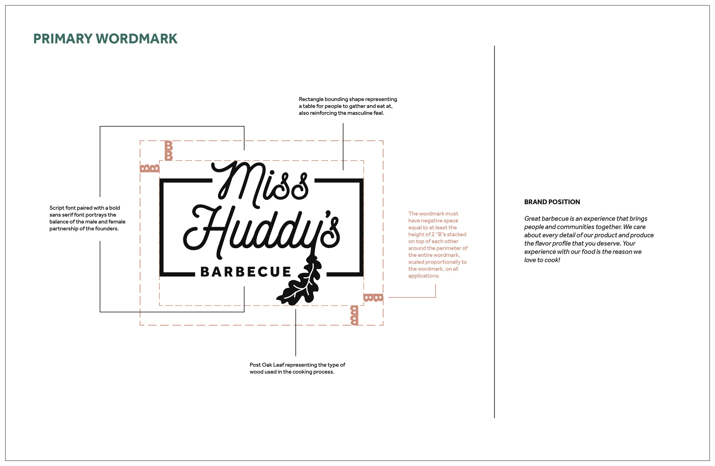 Miss Huddy’s is a small town food truck that serves authentic southern BBQ with a PNW twist. Proud of their feminine name in a male dominated industry, Miss Huddy’s brand was designed to look down to earth, and soft, inspired by the owner’s roots in the green and rainy state of Washington.